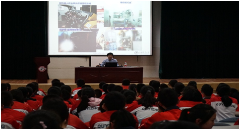 5月7日,校云南招生组(p站视频 )成员孙海英老师与校机器人研究所付庄教授一行,来到云南省久负盛名的曲靖市第一中学,为学生们带来了一场别开生面的讲座:多机器人系统协作技术的现状与展望。