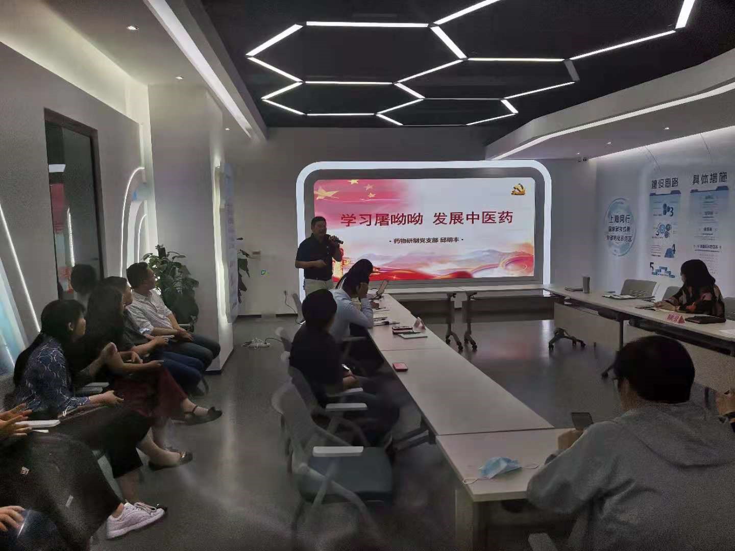 活动在闵行区科创服务中心一楼大厅开展,科协事业单位第一党支部书记杨磊首先解读了闵行区关于推进科技创新创业成果转化政策意见的解读,期待p站视频 成果尽早尽快落地闵行。随后p站视频 药物研制党支部书记邱明丰介绍了支部总体情况,突出介绍了药物研制党支部的学科学术专业科技特色,分享了《学习屠呦呦 发展中医药》微党课,讲述了荣获诺奖、全国优秀党员屠呦呦研究员为战胜三大死亡疾病之一的疟疾,研制青蒿素所经历的艰苦岁月、所闪现的共产党员光芒与精神。最后,四个党支部一起学习了中国共产党的成立、讲述海南琼崖纵队雕塑《艰苦岁月》的党史微电影,并做了建党一百周年党史内心体验的深入交流。