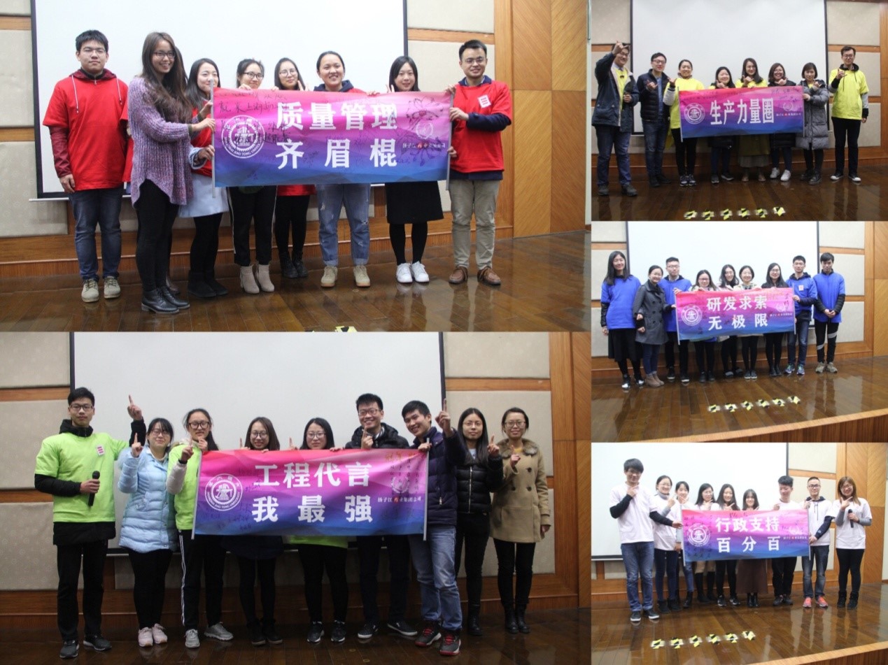 最后,工作人员还为同学们准备了有趣的素拓游戏,5个小组分别在游戏结束后上台展示了小组的成果,最终由质量管理小组取得了比赛的第一名,并获得了企业准备的丰富奖励。
