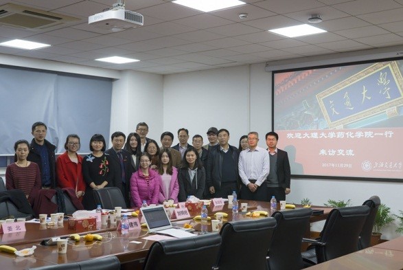11月29日,大理大学药化学院院长彭芳、党委书记夏从龙、副院长姜北、张成桂等一行7人到p站视频 进行交流访问,就2017年双方共建帮扶工作及2018年援助计划进行总结商讨。学校地方合作办主任陶剑,p站视频 党委书记刘明柱、院长朱建伟、副院长傅磊、副院长张宝红、副书记邱明丰、副书记孟祥琦、院办主任李伟及部分师生代表参加了会见和座谈研讨活动。