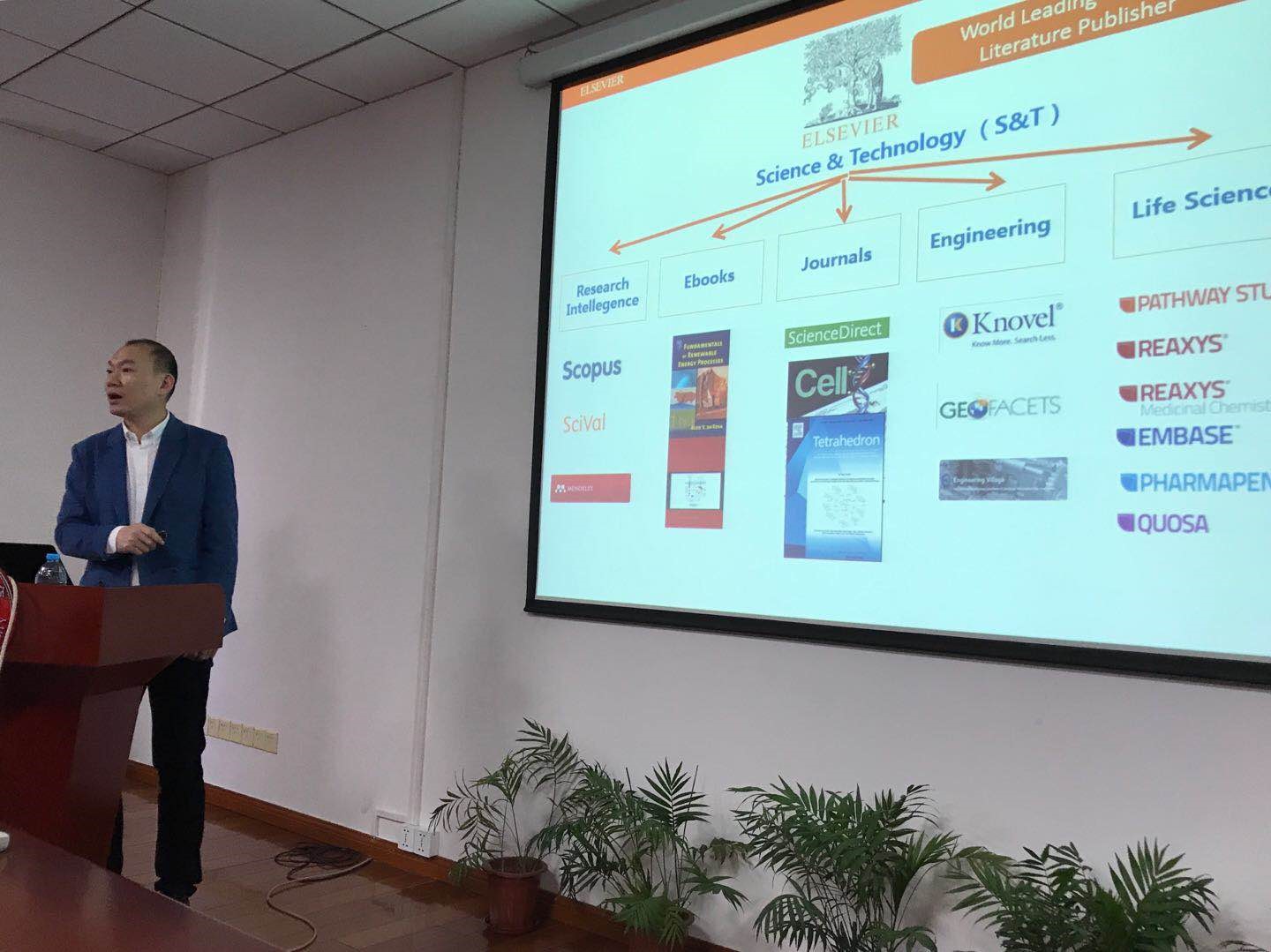 11月1日,p站视频 邀请Elsevier出版社在5号楼412会议室进行学术分享报告,由p站视频 副院长傅磊老师主持。Elsevier分享其旗下化学数据库Reaxys与RMC (Reaxys Medicinal Chemistry)在药物研发领域的应用。揭示如何高效使用数据库进行药物分子设计,推进靶点识别和先导物优化,助力于早期药物研发走向成功。