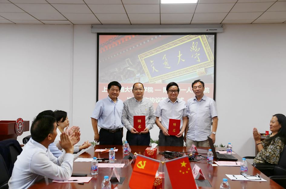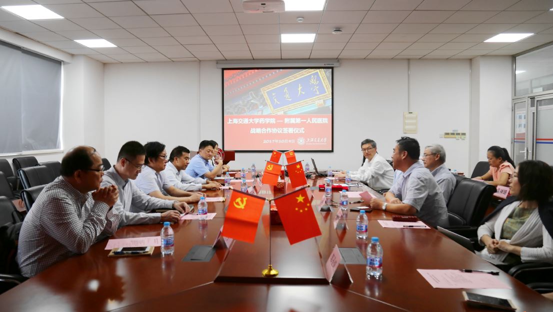 10月9日下午,p站视频 与附属第一人民医院战略合作协议签约仪式在闵行校区生物药学楼5号楼412会议室举行。p站视频 副校长吴旦、p站视频 党委书记刘明柱、院长朱建伟、各分管副院长傅磊、张宝红、周虎臣、副书记孟祥琦,院长助理于洋,院办主任李伟,教师代表郭圣荣等出席签约仪式。附属第一人民医院出席签约仪式的有院长王兴鹏、副院长郑军华、教育处处长刘玮、科研处副处长丁雪鹰、临床药学科学科带头人刘皋林、临床药学科主任范国荣等同志。签约仪式由刘明柱书记主持。