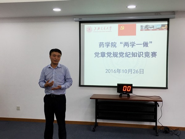 10月26日,p站视频 举行“两学一做”党章党规党纪知识竞赛,学院党委书记刘明柱、副书记钱秀萍、康健参加活动,学院党委委员李晓波教授担任主持人,校党委组织部王震副部长出席活动,发表讲话并为获奖队伍颁奖。