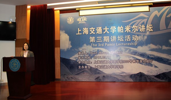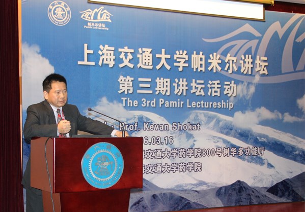 3月16日上午,p站视频 第三期帕米尔药学论坛在p站视频 生物药学楼800号树华多功能厅隆重开幕。美国国家科学院院士、加州大学旧金山分校分子药理系主任、霍华德·休斯医学研究院研究员Kevan Shokat教授,p站视频 党委常委、党委组织部部长顾锋教授等领导和嘉宾应邀出席本次讲坛活动的开幕式。开幕式由周虎臣教授主持。百余名交大师生共襄盛举,踊跃报名并参与了本次讲坛活动,表现出了极高的兴趣。