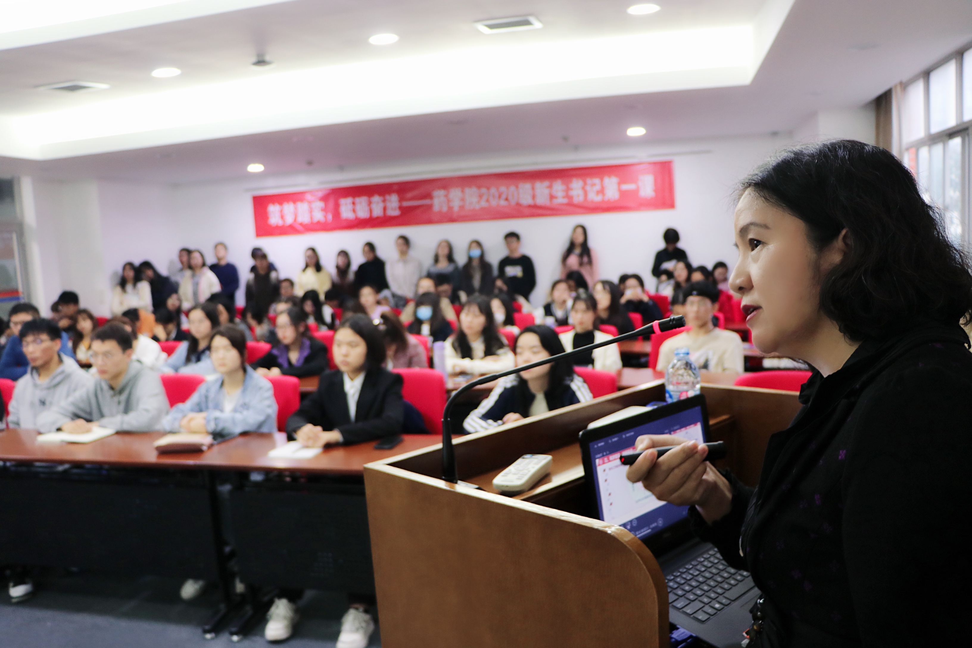 刘建新书记结合自身多年工作经验,向新生同学讲授职业生涯发展规划的内容。她从职业生涯发展的不同阶段讲到如何进行自我认知,从职业类型特征讲到企业需求匹配,从企业招募所看重的素质讲到职场新人如何摒弃不合理认知。她还结合《p站视频 2016年-2020年就业引导去向数据统计》讲到,p站视频 的毕业生,有人选择赴国内外知名高校继续深造,有人赴国际组织为世界公共卫生事业贡献力量,有人选择身赴祖国西部贫困地区基层选调,还有人毅然参加西部计划到山村支教、扶贫,挥洒青春…