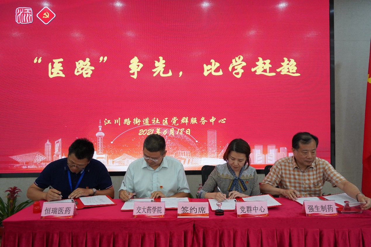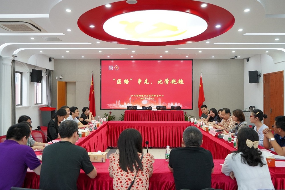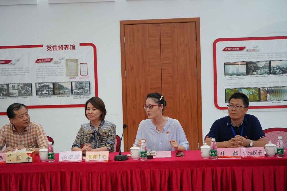 习近平同志在党的十九大报告中强调:“伟大斗争,伟大工程,伟大事业,伟大梦想,紧密联系、相互贯通、相互作用,其中起决定性作用的是党的建设新的伟大工程。推进伟大工程,要结合伟大斗争、伟大事业、伟大梦想的实践来进行”。为践行习近平总书记这一重要论述,药物研制党支部将党建与中心工作深度融合到一起。6月18日下午,p站视频 药物研制党支部在江川路街道社区党群服务中心与江川路街道社区党群服务中心党支部(以下简称江川路街道党支部)、上海市恒瑞医药有限公司党总支(以下简称恒瑞医药党总支)、上海强生制药有限公司党支部(以下简称强生制药党总支)联合开展生物医药支部共建活动。