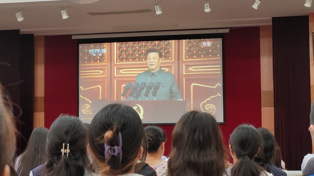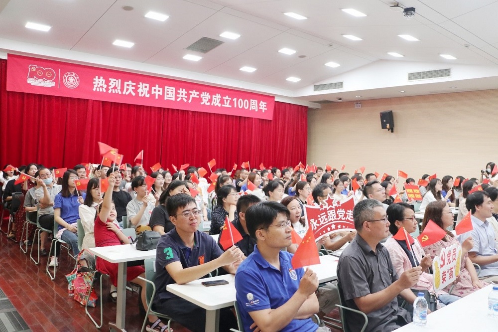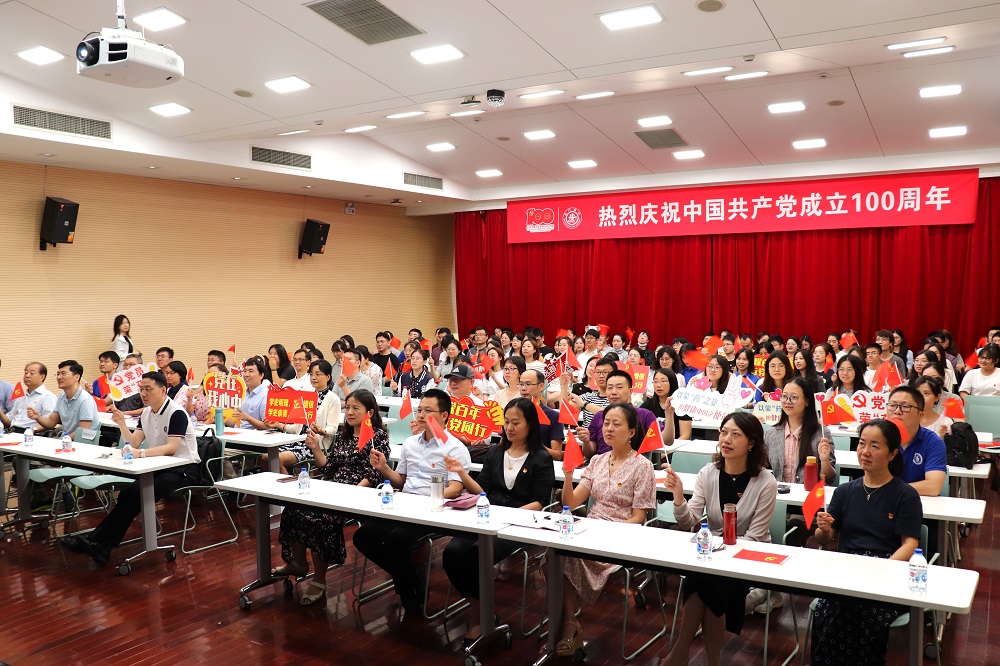 2021年7月1日上午,庆祝中国共产党成立100周年大会在北京天安门广场隆重举行。中共中央总书记习近平在大会上发表重要讲话。p站视频 领导班子、师生党员和积极分子齐聚树华报告厅观看庆祝大会直播。