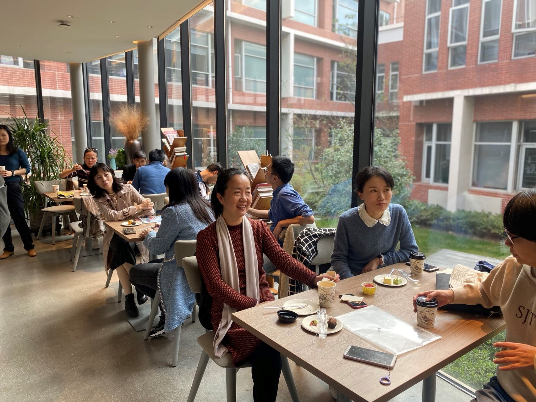在咖香四溢的氛围中,老师们一边品尝着咖啡和甜点,一边畅聊工作和生活,欢声笑语洋溢在整个咖啡厅。