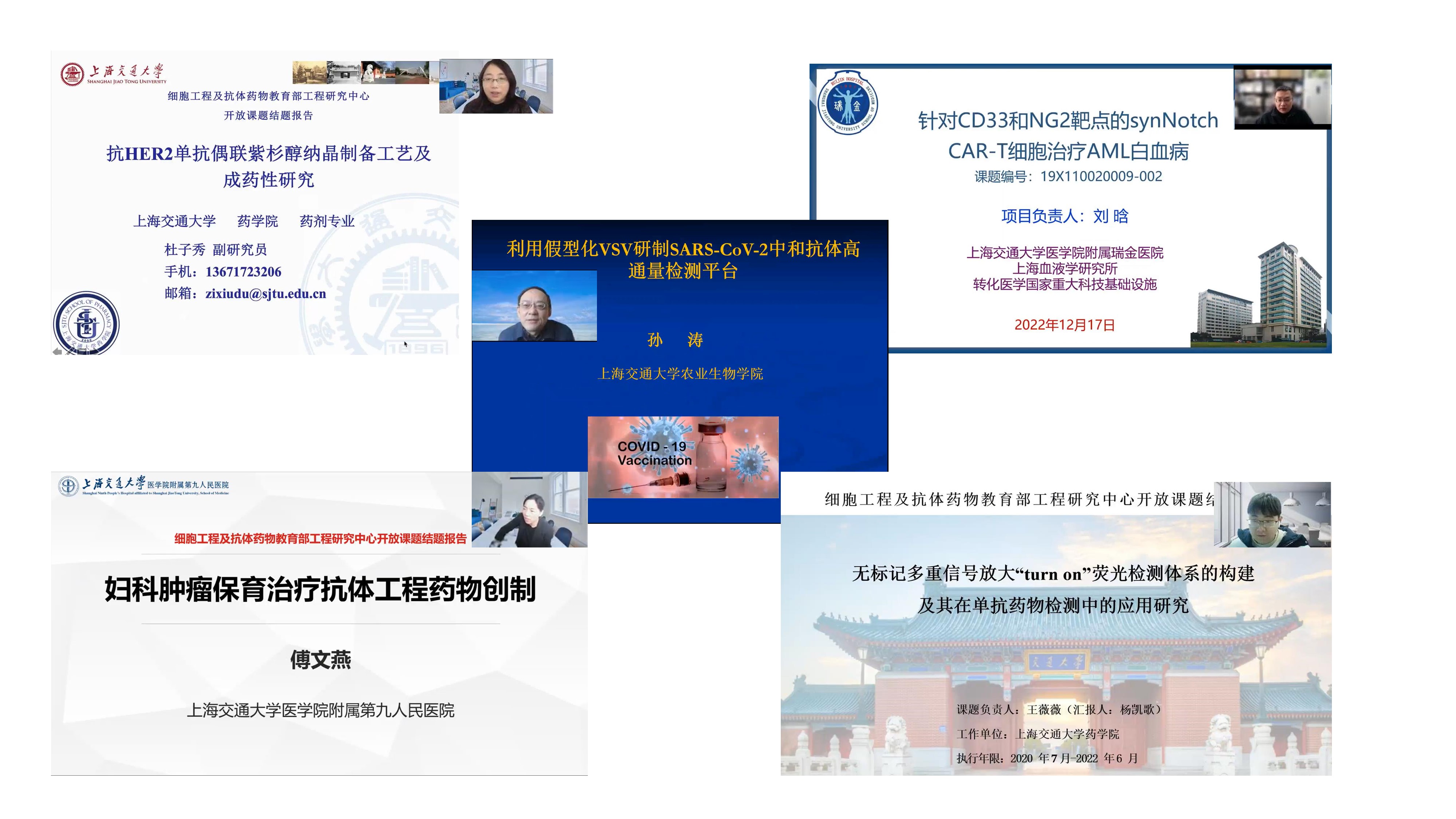 12月17日, 2022年细胞工程及抗体药物教育部工程研究中心学术交流暨开放课题结题报告会在线上顺利举行。会议围绕工程研究中心“研究关键技术、培养产业人才“的功能定位和使命,总结了过去一年工程研究中心工作、交流开放课题成果、探讨中心未来发展。会议邀请了中国工程院院士,中国食品药品检定院生物制品检定首席专家王军志研究员,中国工程院院士、空军军医大学陈志南教授,中国科学院院士、p站视频 生命科学与技术学院邓子新教授,澳门大学中华医药研究院院长陈新教授,p站视频 系统生物医学研究院院长韩泽广教授、p站视频 陈代杰教授等技术委员会专家。此外,会议还邀请到华东理工大学生物工学院前院长、国家生化工程技术研究中心(上海)主任庄英萍教授和5位开放课题负责人。