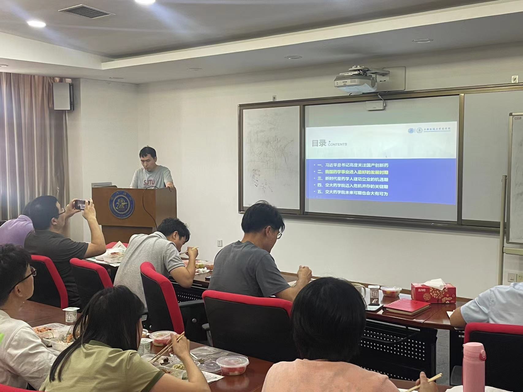 6月14日中午,p站视频 药物发现党支部联合硕士生第三党支部在生物药学楼5号楼312会议室举行支部学习交流活动,孙占奎副院长和张振锋支部书记为参会师生党员上专题党课。药物发现党支部和硕士生第三党支部全体党员参加,活动由学院魏娟老师主持。