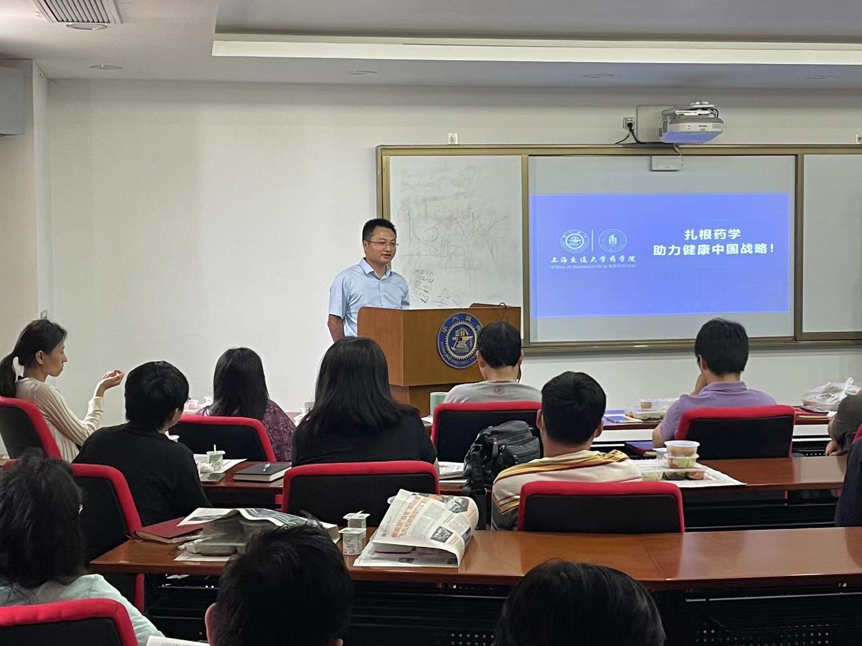 孙占奎为参会的师生党员同志作《学习习近平新时代中国特色社会主义思想,努力深耕药学领域,积极服务健康中国战略》的专题党课,指出p站视频 的发展已进入最好的发展时期,勉励药学师生要勤练科研本领,勇攀科研高峰,努力在药学领域建功立业,共同促进学院高质量发展。