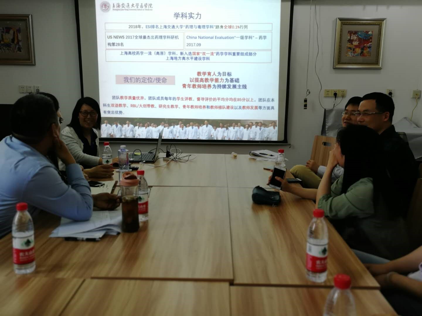参观结束后进行了座谈,p站视频 药物研制支部书记邱明丰研究员、副院长、党委委员和药理与化学生物学支部书记李娟副教授分别介绍了支部的发展、科研、教学等,药理系常务副主任朱亮教授、党委委员对药理与化学生物学科特色进行了总结,副书记兼副院长张宝红副教授对学科评估中基础医学院给予的支持表示感谢并希望继续共同努力“”双一流建设”、共同迎接即将到来的新一轮学科评估。随后,两个支部党员们重点介绍了各自在教学与科研的心得和经验、科研合作兴趣与需求、学生培养等方面进行了进一步的交流。同时,同志们深入探讨如何通过合作来共同推动更高层次上建设p站视频 一流药学学科。现场气氛热烈,大家一致表示以后要加强双方的互动,促进优势互补,紧密合作。最后合影留恋,并期待再次开展联合主题党日活动。