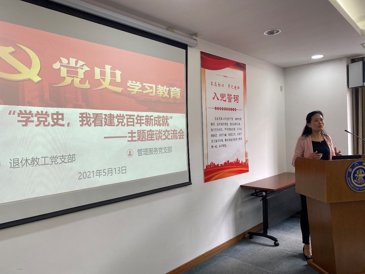 5月13日下午,p站视频 管理服务党支部和退休党支部联组开展“学党史,我看建党百年新成就”主题党日活动。会议由党支部书记李伟主持。