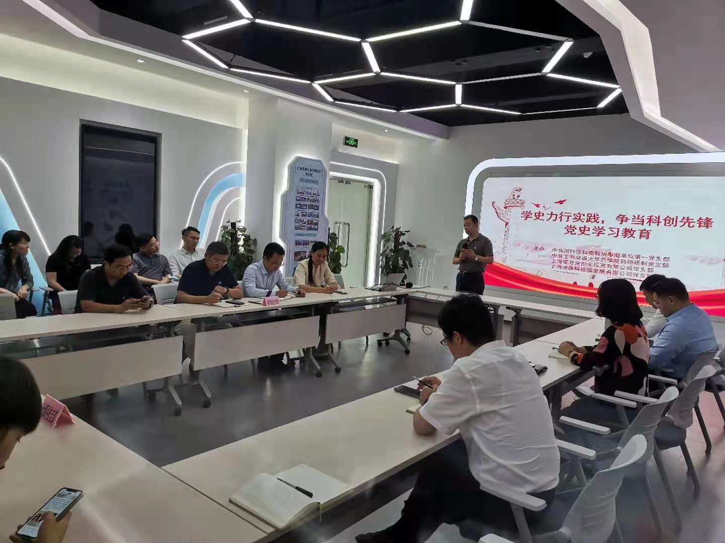 5月28日下午,p站视频 药物研制党支部与闵行区科委科协事业单位第一党支部、上海零号湾创业投资有限公司党支部以及上海沧源科技园发展有限公司党支部共同开展支部共建、共同学党史、支部书记讲党课及产学研创新创业活动。