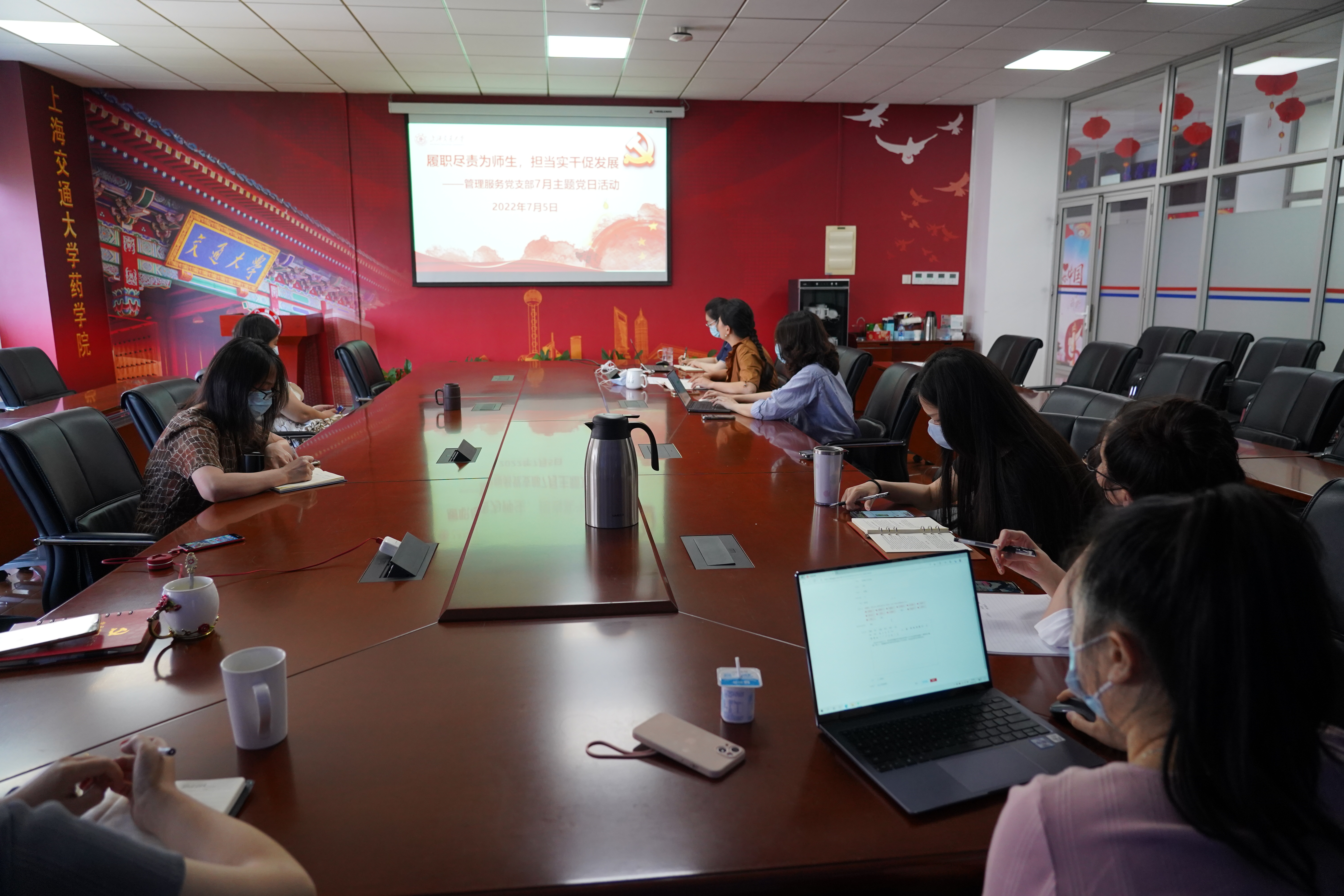 2022年7月5日下午,p站视频 管理服务党支部开展了“履职尽责为师生,担当实干促发展”主题党日活动。院党委书记刘建新以普通党员身份参加了本次活动,活动由支部书记李伟主持。