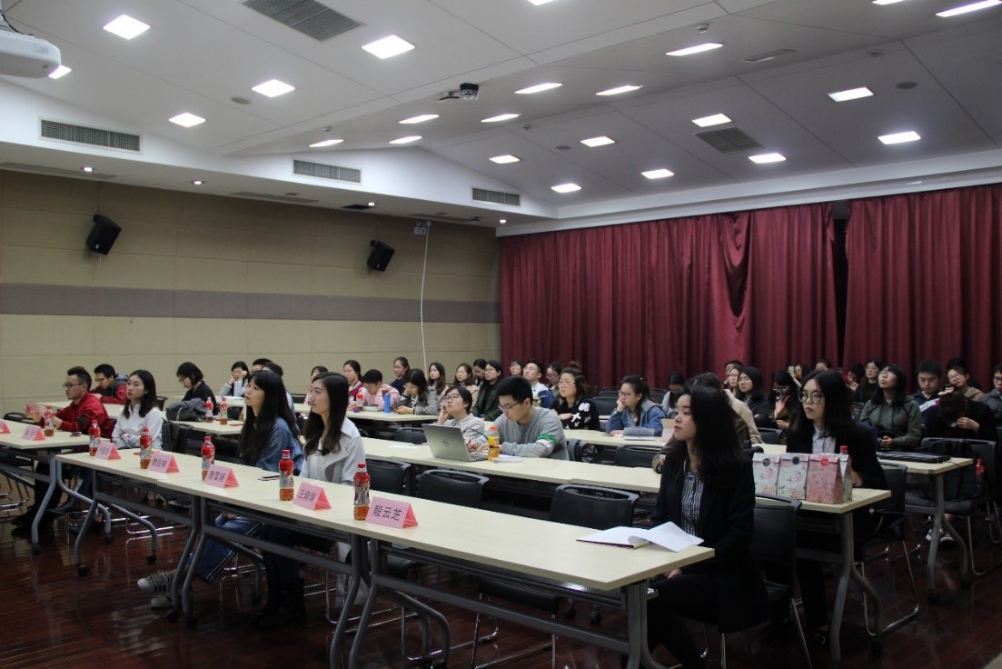 接下来,是五位优秀毕业生张馨语、魏钰楠、唐雪澜、王熵墒、殷云芝分别从她们的求学历程、在校期间的准备及求职心得等方面与师弟师妹进行了面对面的交流和分享,就留校、外企、公务员、出国留学等提供了宝贵的经验。师姐们建议大家多参加校园企业俱乐部和社团学生工作等,丰富实践经历;尽早做好清晰的职业规划,明确今后的发展道路;多关注就业信息发布以及企业宣讲,把握岗位招聘第一信息;保持对理想和信念的追求,终身学习,提升自信。