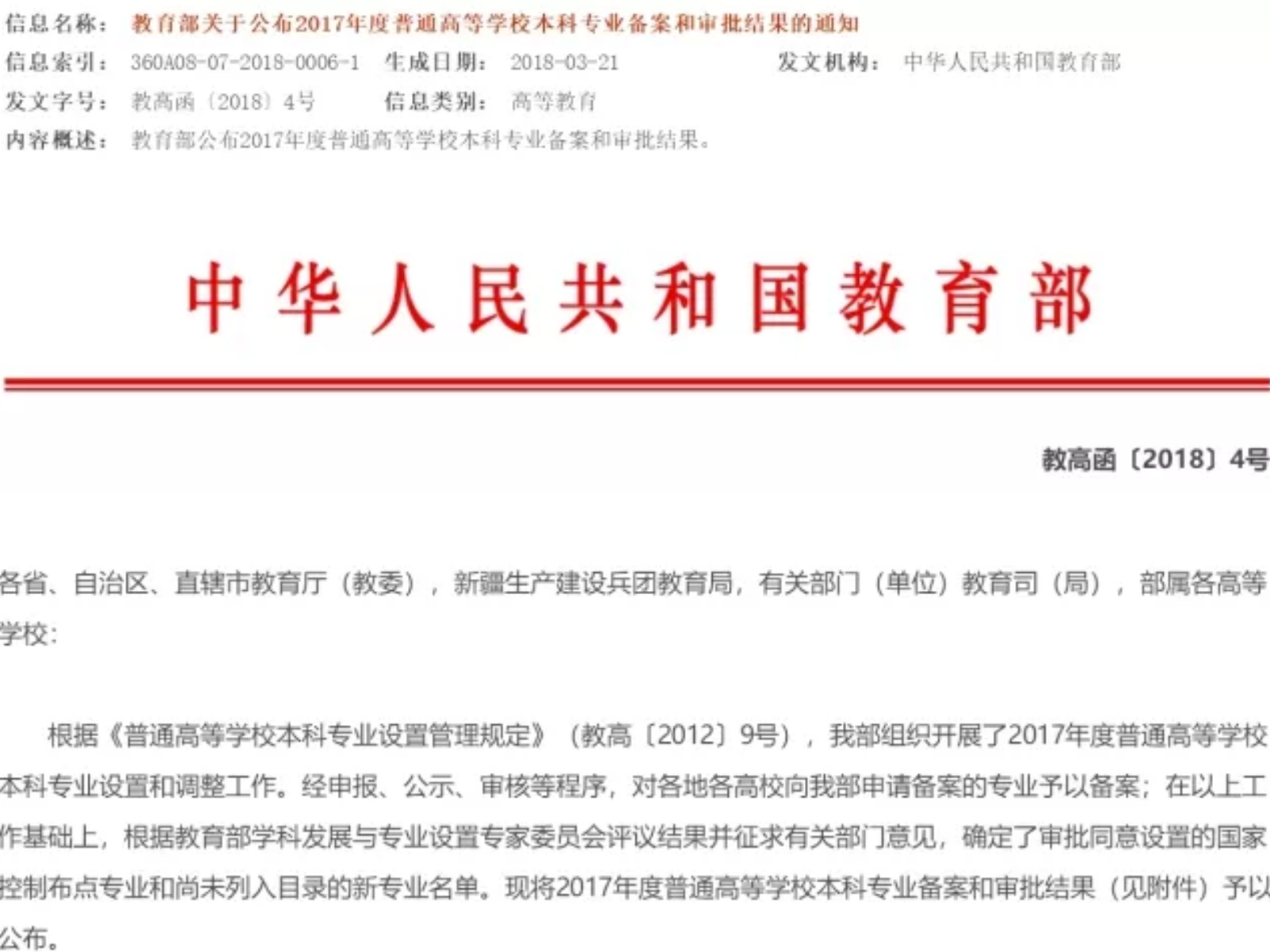 日前,教育部公布2017普通高校本科专业备案和审批结果。p站视频 新增本科专业3个,其中新增备案本科专业2个,新增审批本科专业1个。