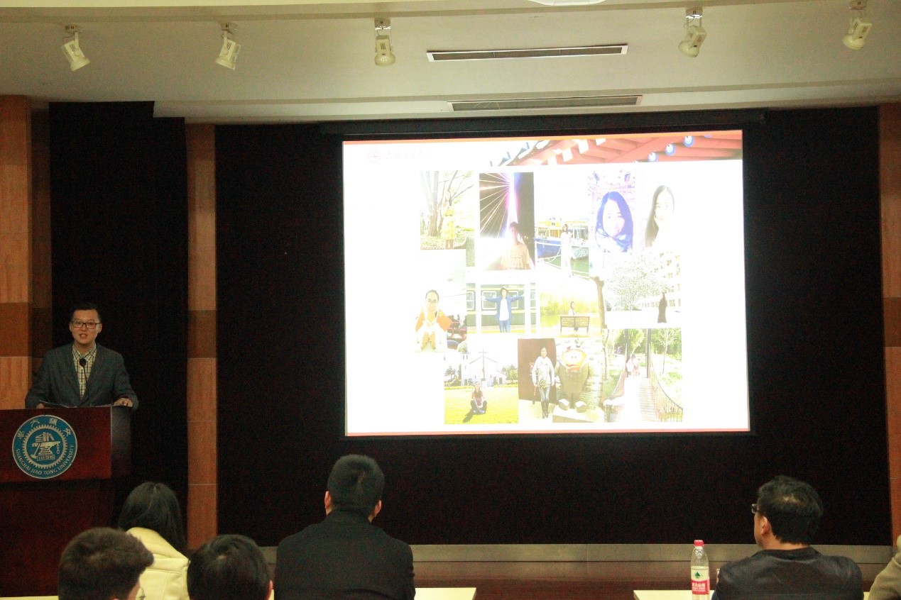 学生代表肖汉则总结了两年半的学习生活中同学们对党的理论知识的学习和社会实践活动的参与,希望同学们在今后的学习生活中继续为中华民族伟大复兴的中国梦添砖加瓦。
