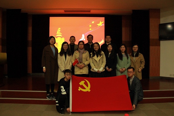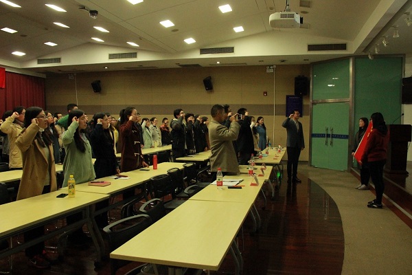 最后由肖汉同学领誓,全体党员同志面对党旗,重温入党誓词。