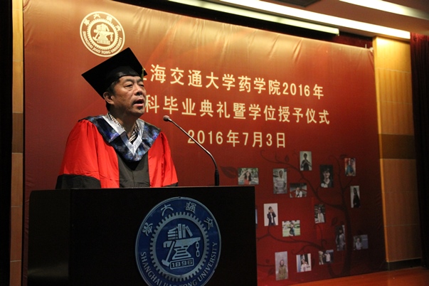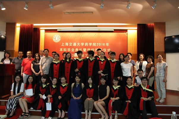 7月3日下午,p站视频 2016届本科生毕业典礼暨学位授予仪式在生物药学群楼树华多功能厅举行。院党委书记刘明柱、F12级班主任徐宇虹教授、大理大学药化学院副院长高鹏飞教授、本科生教务刘晓侠、团委书记石楠、全体学生及部分家长出席毕业典礼。典礼由党委副书记康健主持。