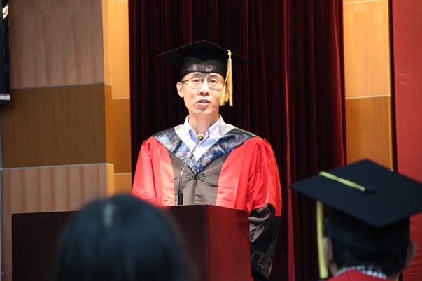 典礼上,党委书记刘明柱老师向毕业生们传达了朱建伟院长在美国出差未能到场的遗憾,他向毕业生们表达了衷心的祝愿,并对即将踏入社会的学生给予了真切的指导,对他们寄语厚望,并深深祝福他们前程似锦。