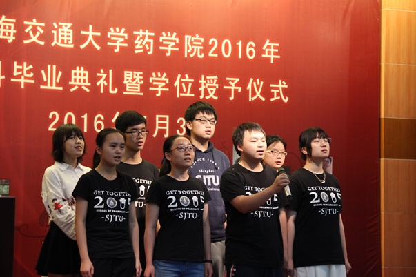 随后,仍然青涩的大一学弟学妹们满怀深情地为学长学姐集体合唱了《送别》,预祝大四毕业生未来美好灿烂。最后所有毕业生一起走上台来,合唱周华健的《朋友》,现场所有的家属也自发一起唱出心声“朋友,一生一起走!”。毕业典礼在一片歌声中落幕。