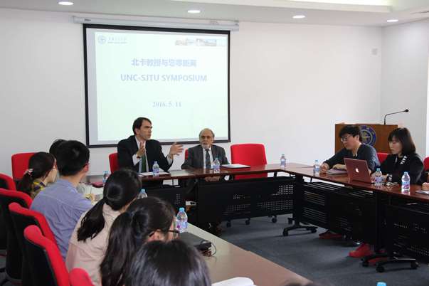 5月11日上午,北卡罗来纳大学教堂山分校Eshelmanp站视频 代表团一行来访交大p站视频 。此次来访的有负责经济发展和国际合作的副院长Dhiren R.Thakker教授和分管全球事务的副院长Stephen F. Eckel教授等。