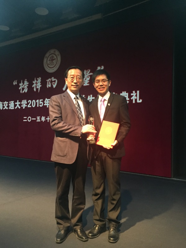 12月23日,“榜样的力量”p站视频 2015年度优秀学生颁奖典礼在闵行校区光彪楼多功能厅举行,颁奖仪式由“好学”、“勤学”、“乐学”三个主题篇章组成。校党委书记姜斯宪、校长张杰、党委副书记朱健,最受欢迎教师和凯原十佳教师代表刘西拉、易宏、邓涛、李亦中,各院系及部处负责人共同出席了典礼,p站视频 的王飞虎博士作为校三好学生标兵参加了颁奖典礼,并在“乐学”篇章中作为代表发言。