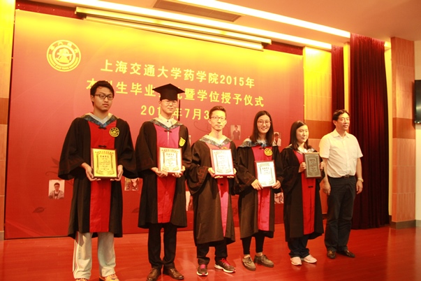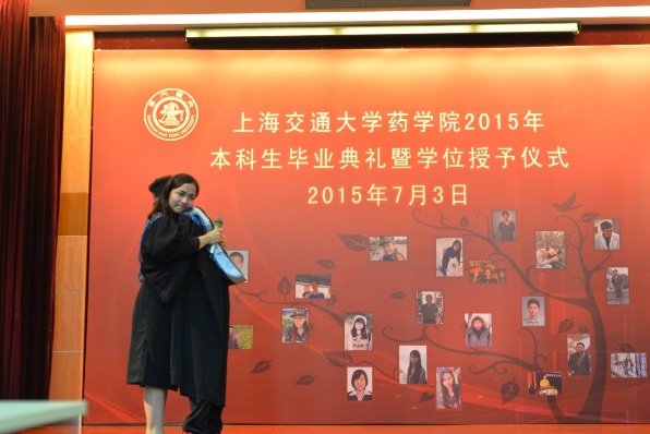 7月3日下午,学院欢送毕业生的重要活动——p站视频 2015届本科生毕业典礼暨学位授予仪式在生物药学群楼树华多功能厅举行。院党委书记刘明柱、院长朱建伟,副书记康健、副院长李晓波及学院张宝红老师、本科教务刘晓侠老师、班主任刘德龙老师和全体学生及部分家长出席毕业典礼。毕业典礼上,朱建伟院长寄语2015届毕业生,在祝贺同学们毕业的同时,也对他们寄语厚望,深深祝福他们有璀璨的明天。刘明柱书记为获得2015届上海市优秀毕业生和p站视频 优秀毕业生颁发奖牌。毕业生代表肖汉同学在发言中回顾了大学四年的点点滴滴。随后,毕业生们逐一上台,朱建伟院长为每一位同学拨穗正冠、授予学位证书并合影留念。