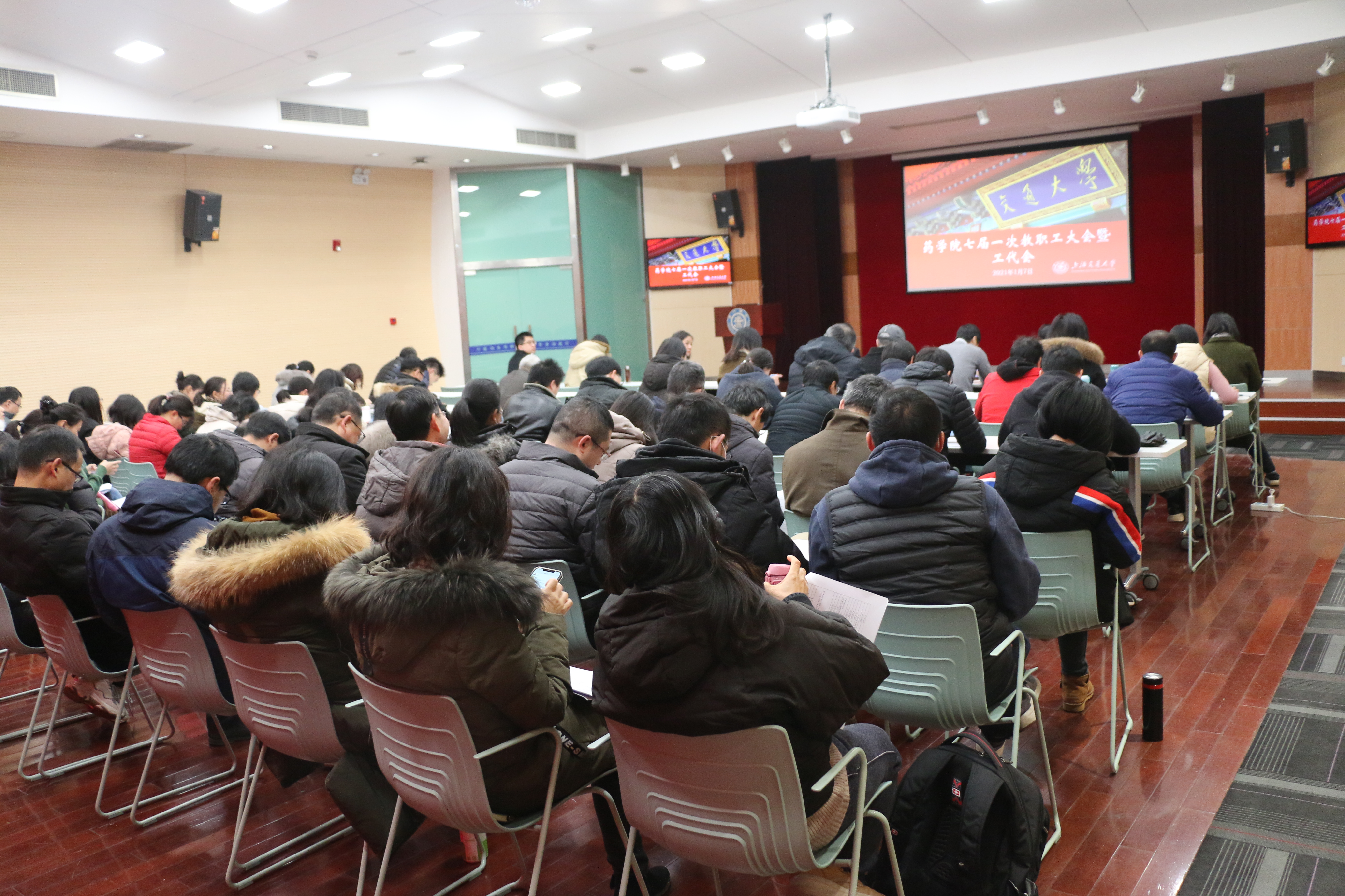 2021年1月7日,p站视频 七届一次教代会暨工代会在生物药学楼树华多功能厅召开。p站视频 党委书记刘建新,院长张翱,副书记张宝红,副院长邱明丰,副书记孟祥琦,院工会主席赵博及学院教职工代表参加大会。