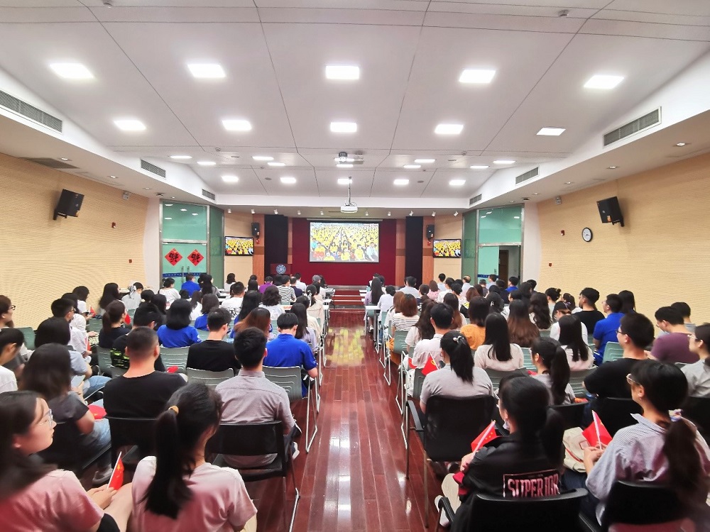 2021年7月1日上午,庆祝中国共产党成立100周年大会在北京天安门广场隆重举行。中共中央总书记习近平在大会上发表重要讲话。p站视频 领导班子、师生党员和积极分子齐聚树华报告厅观看庆祝大会直播。