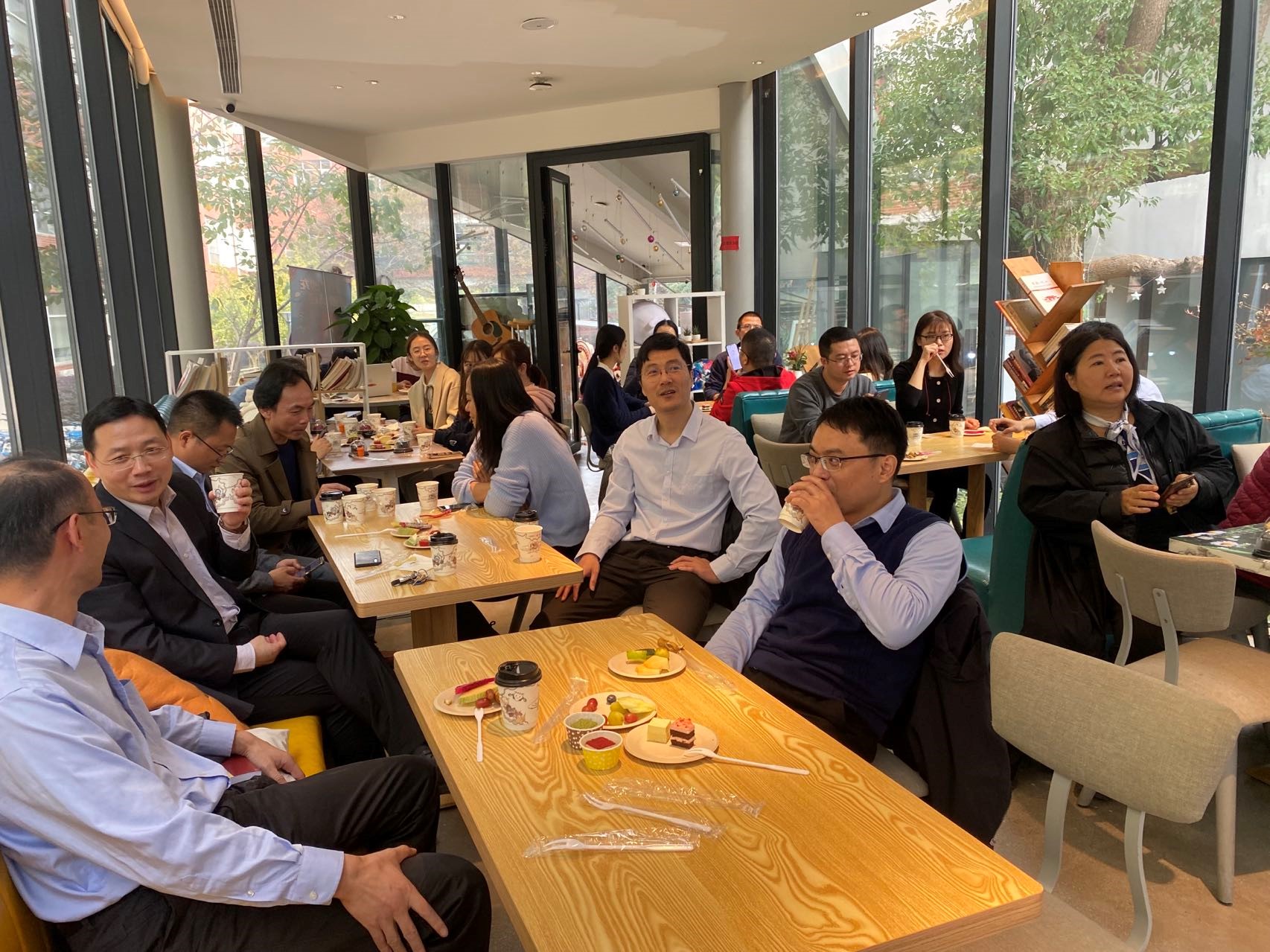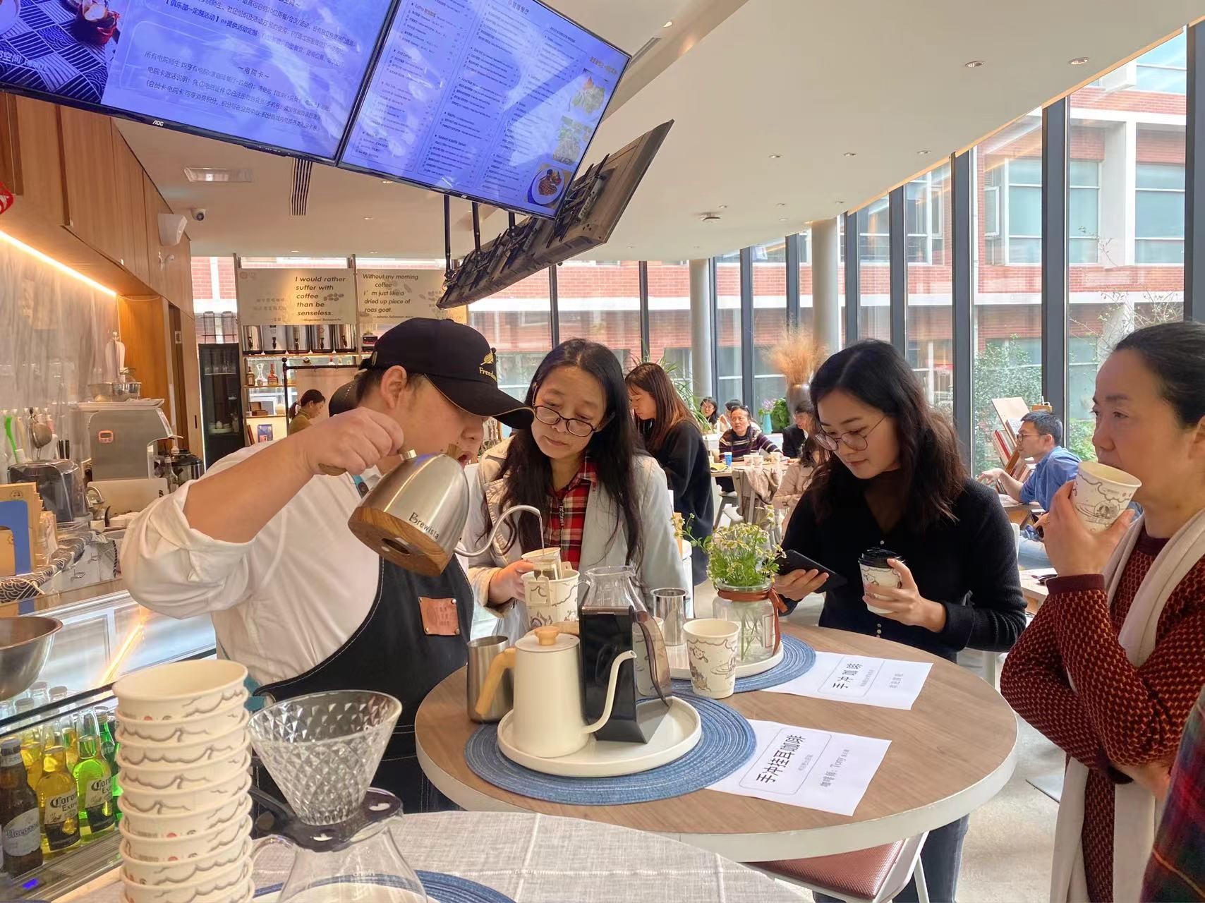 在咖香四溢的氛围中,老师们一边品尝着咖啡和甜点,一边畅聊工作和生活,欢声笑语洋溢在整个咖啡厅。