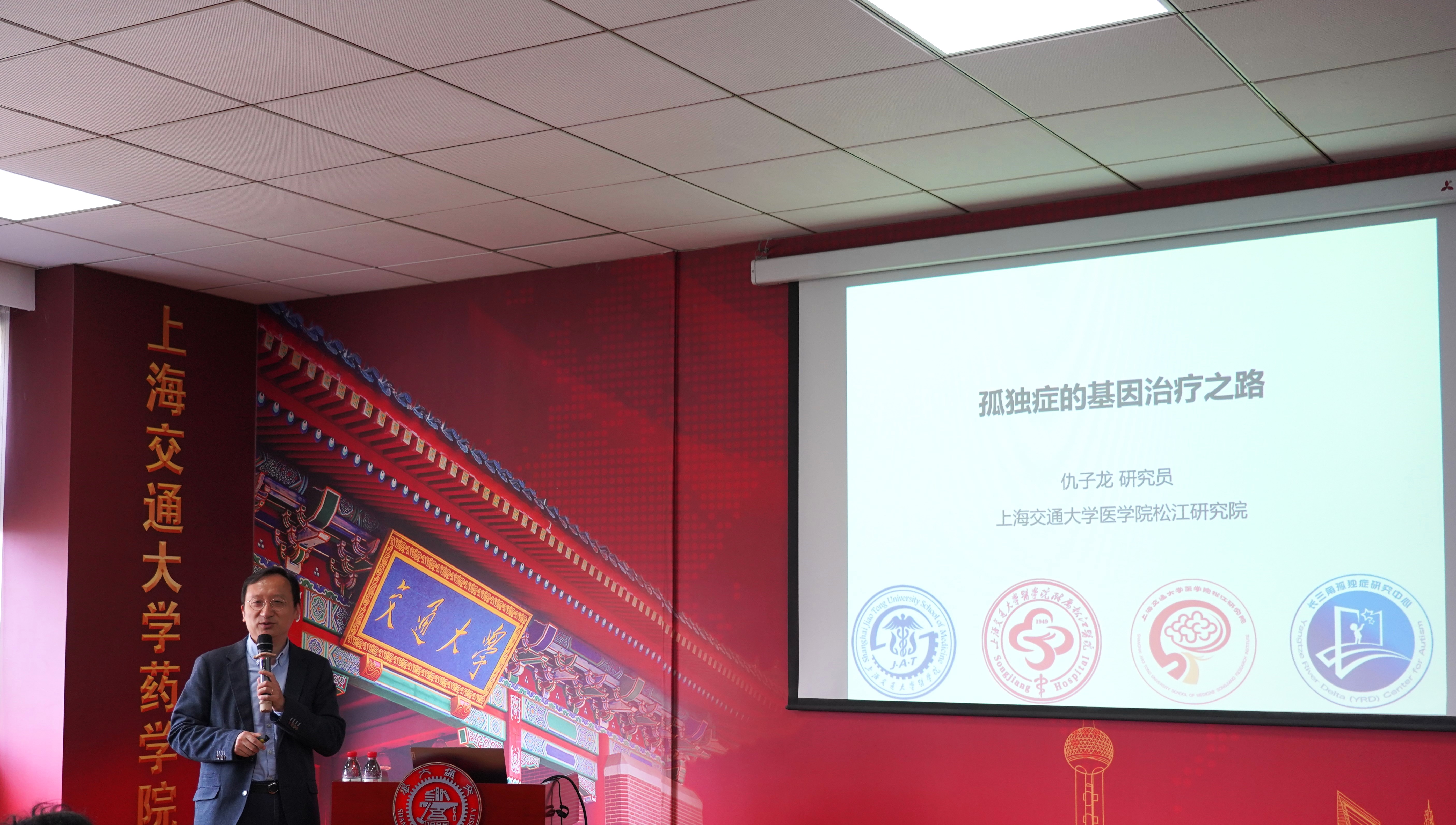 4月10日,p站视频 医学院松江研究院仇子龙特聘教授及p站视频 附属精神卫生中心胡荣贵特聘教授受邀访问p站视频 ,做客上海市药物靶标发现及递送前沿科学研究基地举办的“自闭症研究前沿学术论坛”进行学术交流并作学术报告。p站视频 院长、上海市药物靶标发现及递送前沿科学研究基地主任张翱主持报告会,副院长钱峰、院长助理邓刘福等出席会议,相关师生代表50余人参加。