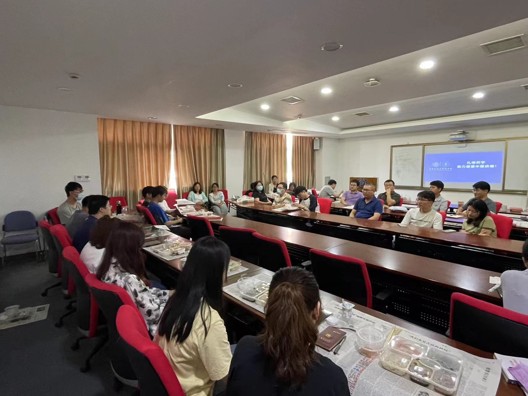 孙占奎为参会的师生党员同志作《学习习近平新时代中国特色社会主义思想,努力深耕药学领域,积极服务健康中国战略》的专题党课,指出p站视频 的发展已进入最好的发展时期,勉励药学师生要勤练科研本领,勇攀科研高峰,努力在药学领域建功立业,共同促进学院高质量发展。